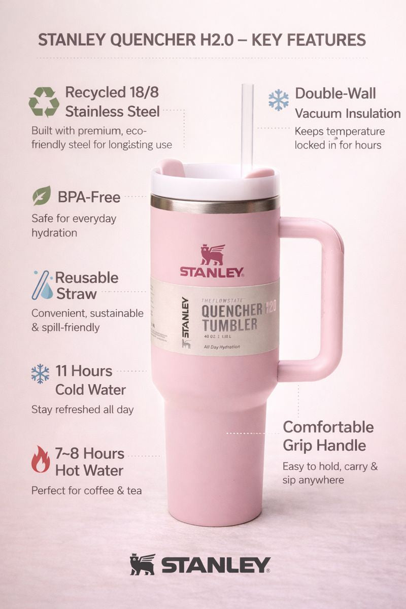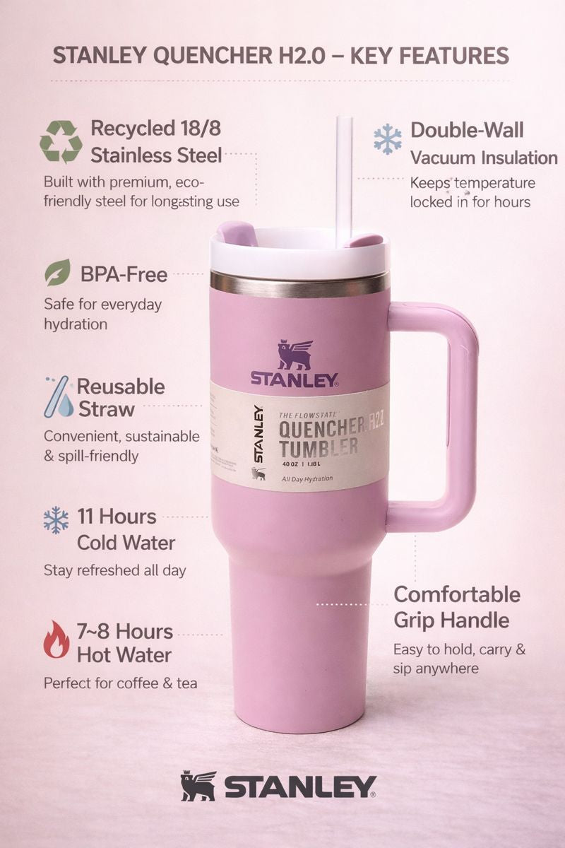 Stay hydrated in style with the Stanley Pure Tones Quencher H2.0 Tumbler,