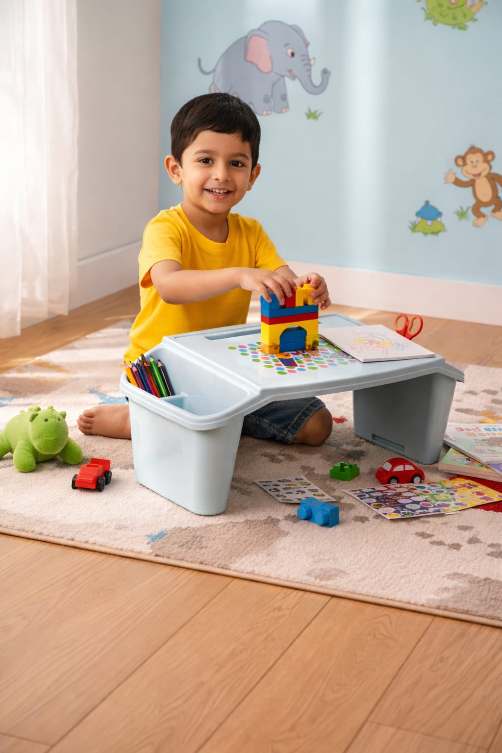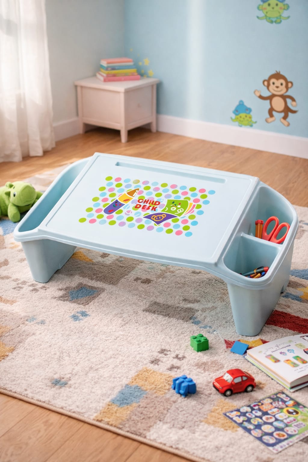 a funny and attractive portable desk designed to keep kids happy and focused while